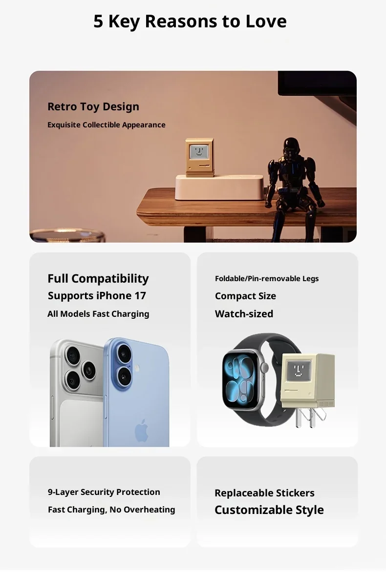 SHARGE Macintosh Maclock Retro 76W 35W Charger Fast Charge Mobile Phone Charger Portable